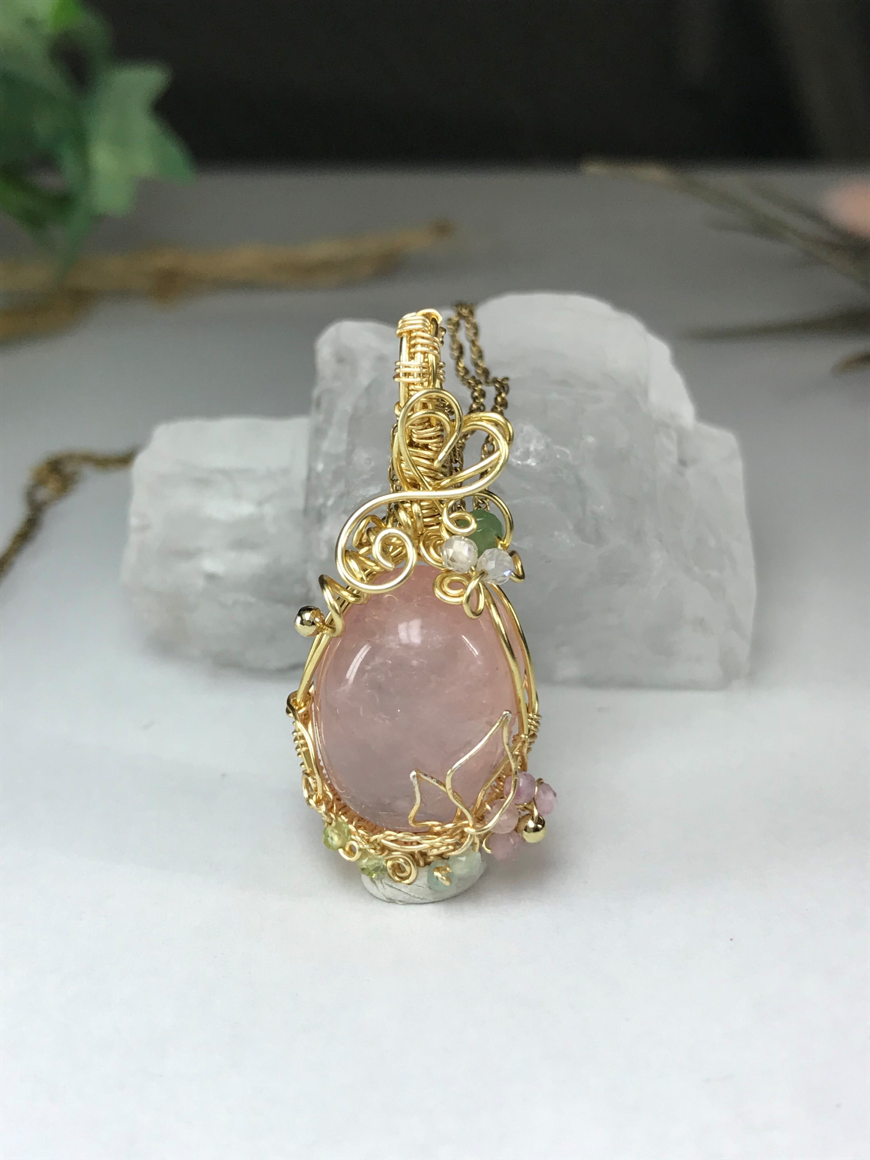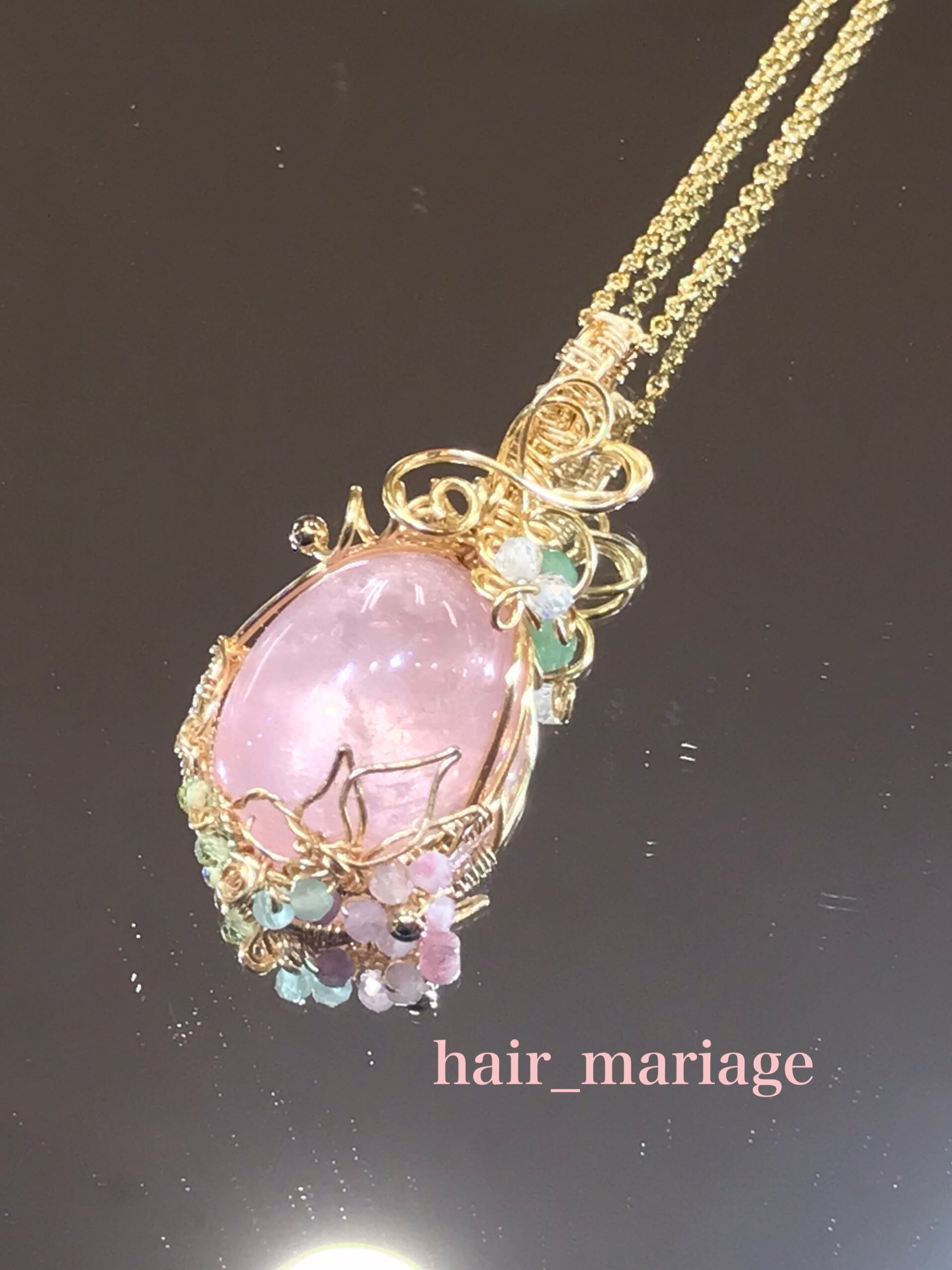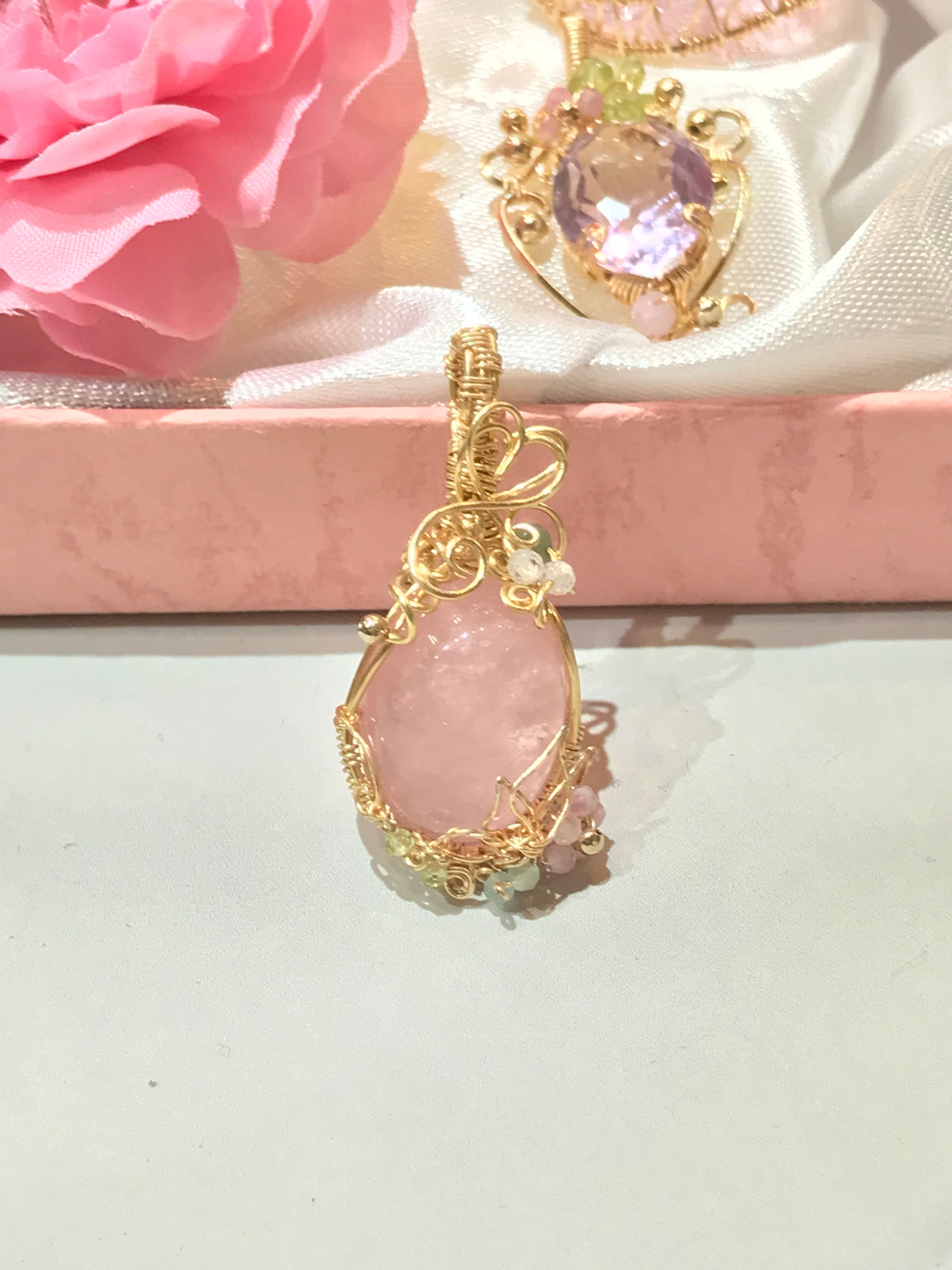 見返りを求めない愛、本当の愛を教えてくれる石。優しいピンクに魅了されます。繊細で優美な技法を使いロマンチックな作品に出来上がりました。