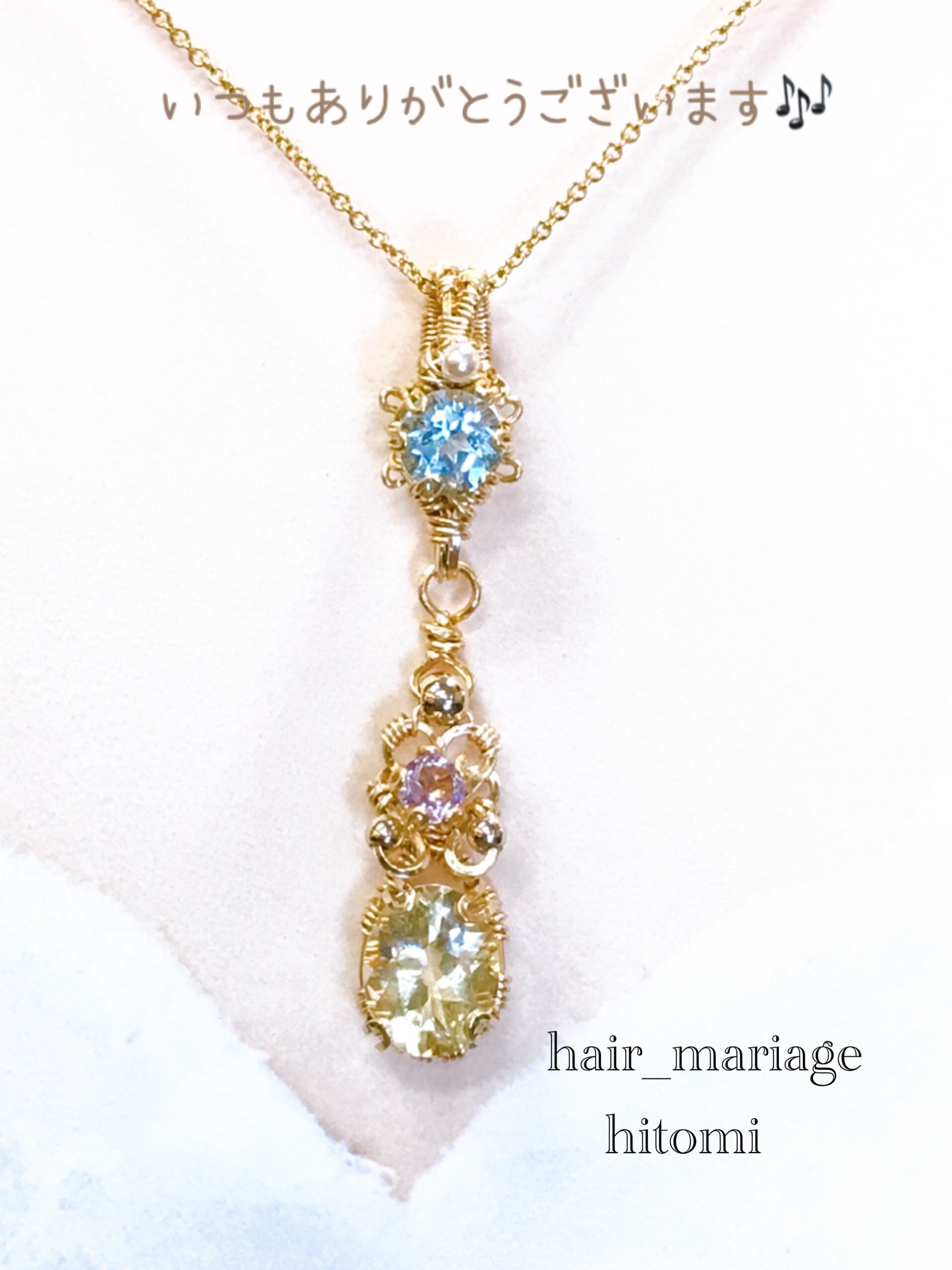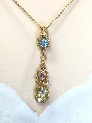 レモンクォーツ+スイスブルートパーズ+ピンクアメジスト