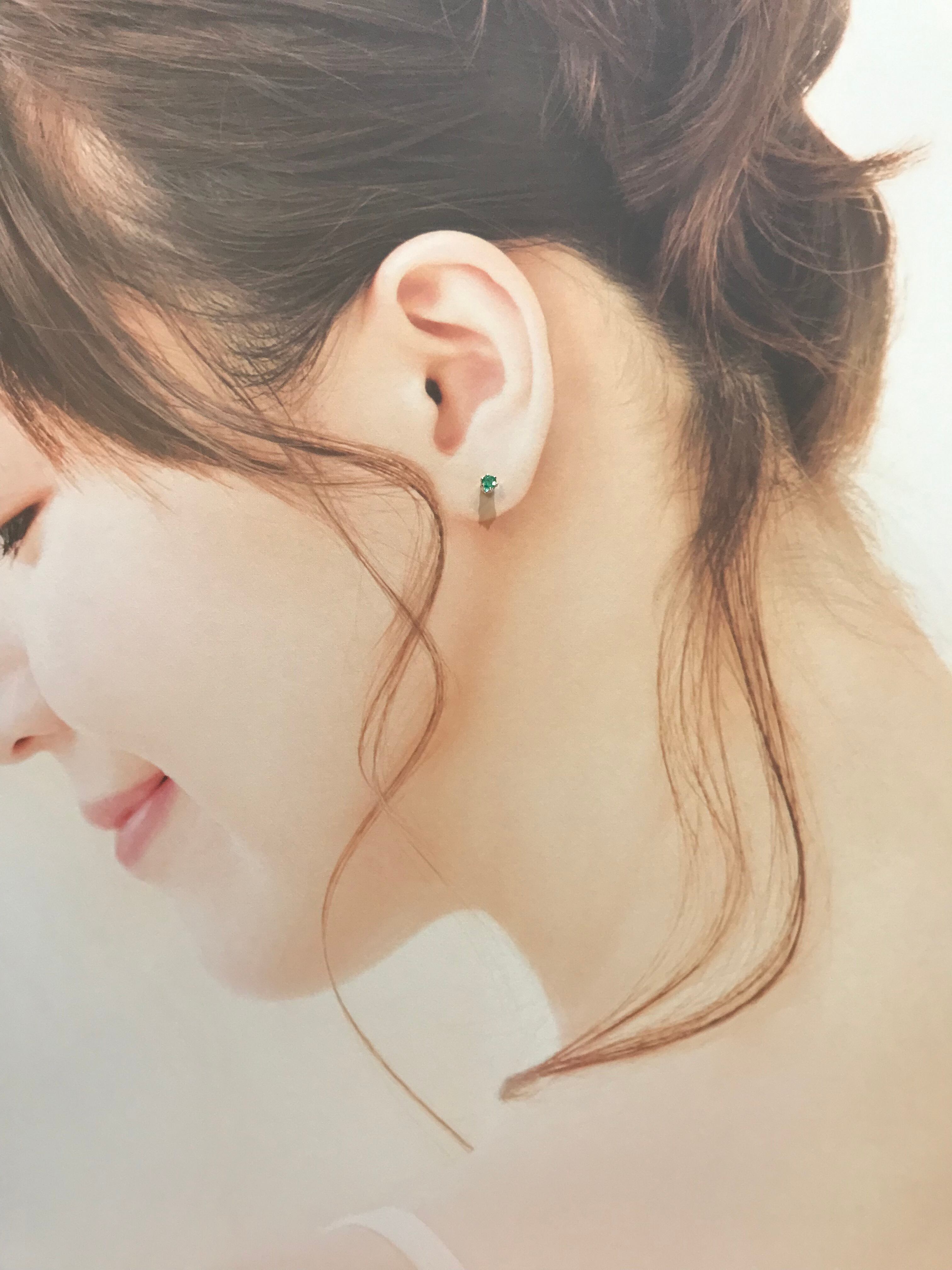 上品で、華やかな装いを演出するジュエリーです。天然のエメラルドを豪華にシンプルにあしらったデザインはフォーマルなシーンでも大活躍です。