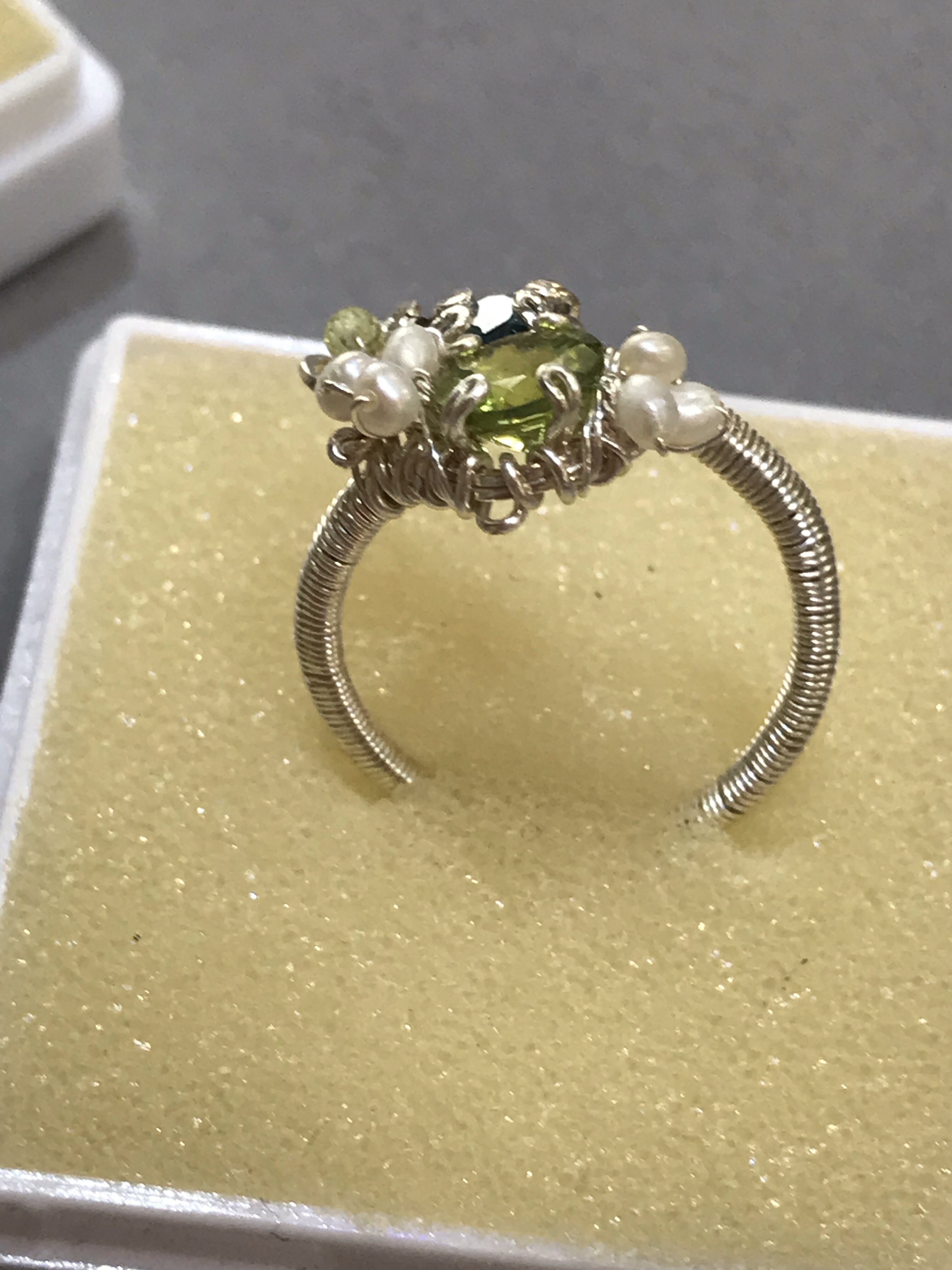 ペリドットとトパーズの輝きが煌めくリングです。華奢なデザインなので、手元を上品に飾ります。ペリドットは幸運を呼び込む石として有名で、トパーズは知恵や勇気を与えてくれるとされています。このリングを身につければ、幸運を引き寄せ、明るい未来に向かって進む勇気が湧いてくるかもしれません。